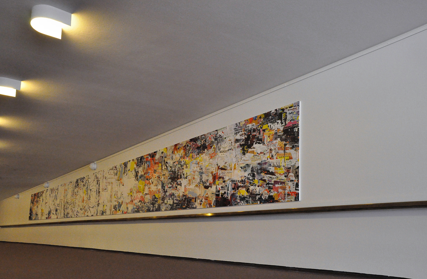 Kiinnostus värin ja muodon syntymiseen vaikeasti hallittavien emootioiden, ”vahinkojen” kautta, on ajanut katsomaan ympäröivää maailmaa etsivin silmin. Syntynyt kiinnostus julisteilla peitetyn seinän visuaalisuuteen, sen kerroksellisuuteen, kykyyn heijastella elämää, auttoi materiaalin valinnassa. Materiaalissa on itsessään historia; julisteeseen kiteytyy se kulutuksen ja informaation määrä, jota yritämme päivästä toiseen jäsentää. Pääasiassa musiikkitapahtumien julisteista koostumalla käy teos keskustelua myös konserttitalon kanssa.