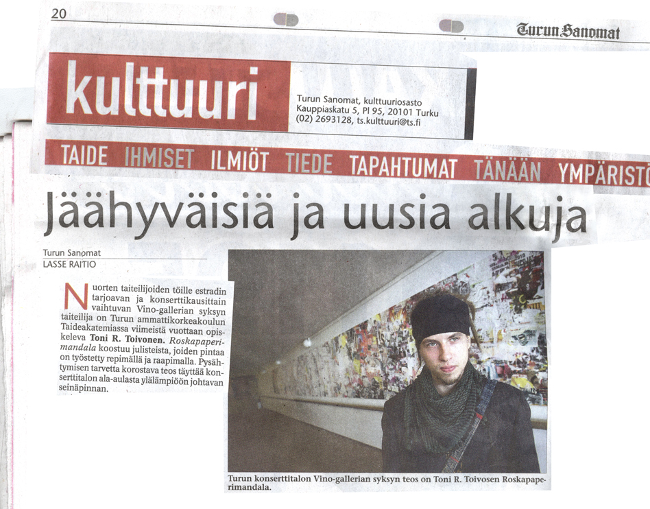2012 teos Roskapaperimandala on vuokrattu Turun kaupungin käyttöön Sosiaali- ja terveysalan Ammatti-instituutin tiloihin.